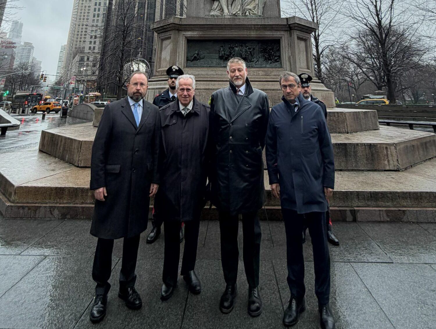 Il Ministro della Cultura Giuli depone una corona sulla statua di Cristoforo Colombo
