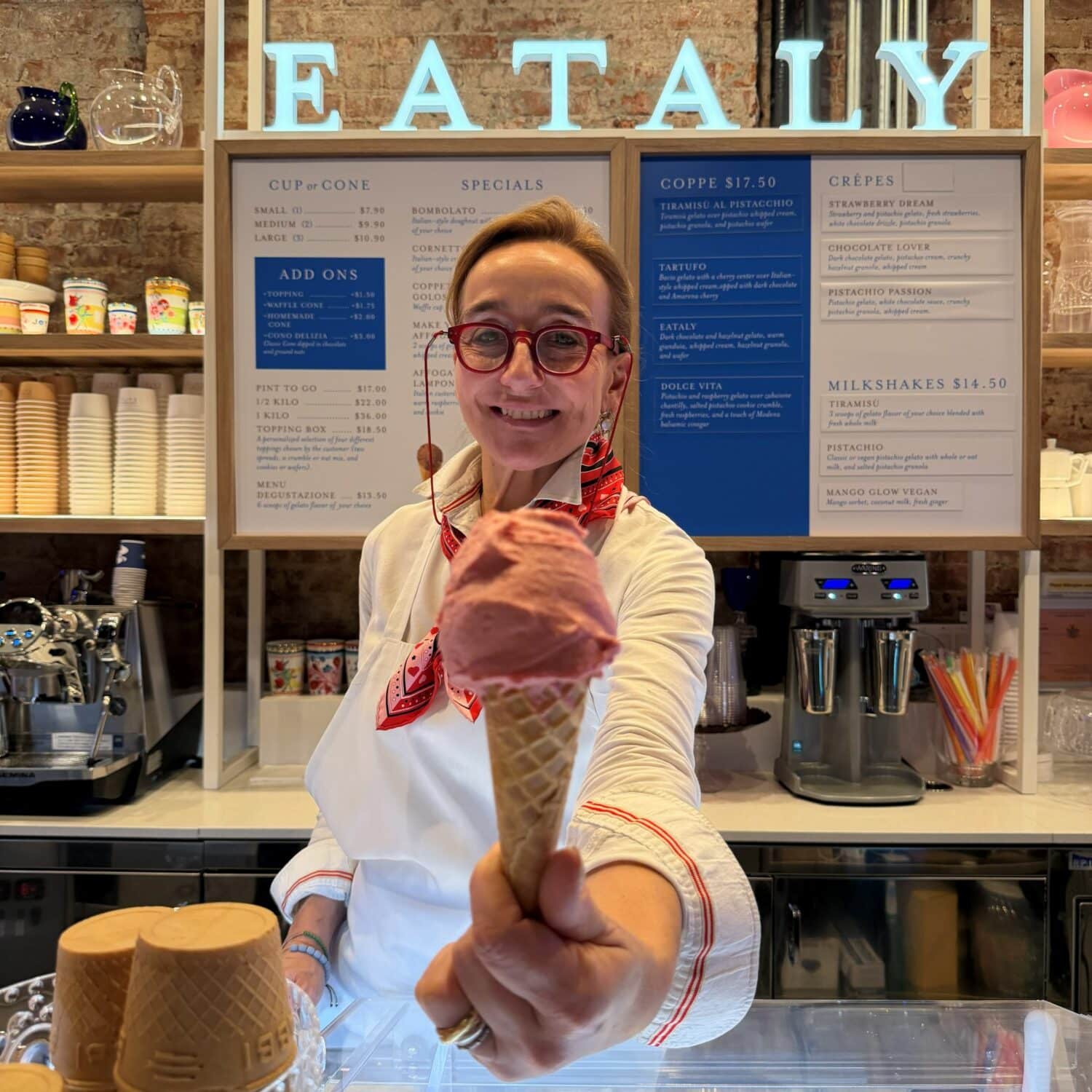 Ci siamo riusciti: qui abbiamo ottima frutta, abbiamo un latte particolarmente buono. Circa il 65-70% del nostro gelato è fatto con materie prime americane. Questo ci permette di lavorare serenamente anche con i dazi», spiega. Il pistacchio, la nocciola, alcuni cioccolati d’eccellenza arrivano ancora dall’Italia, ma latte e frutta provengono da fattorie selezionate negli Stati Uniti. «È un ponte sostenibile: loro ci offrono materie prime fresche, noi portiamo tradizione e tecnica». Un modello che valorizza il territorio in cui operano senza tradire la radice italiana del prodotto.